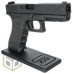 This Glock Pistol Stand Black with Red Logo is 3D printed using the latest technology.