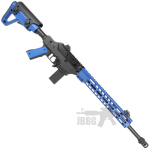 - Stock and Grip: The rifle features a 6-position extendable stock compatible with real-steel AR-15 buffer tubes and a 1911/MEU-style pistol grip, allowing for customisation to the user’s preference.